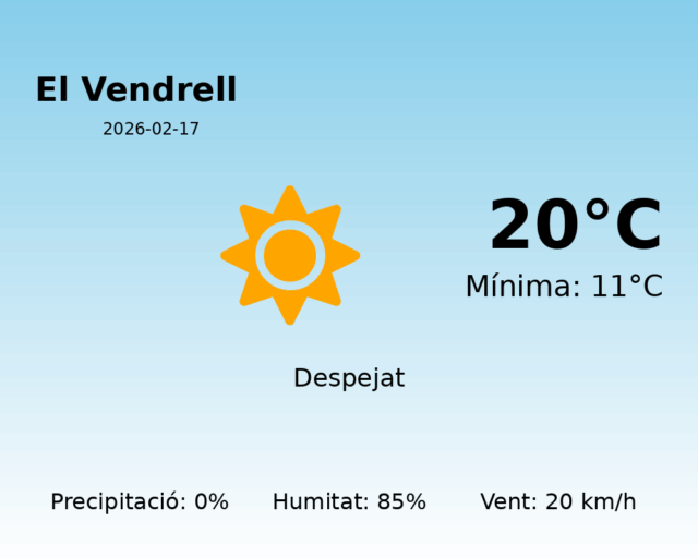 Bon dia, habitants d’El Vendrell! Avui, us portem la previsió meteorològica detallada per al 17 de febrer de 2026. Prepareu-vos per gaudir d’un dia sense precipitacions, amb temperatures que conviden a gaudir de l’exterior.