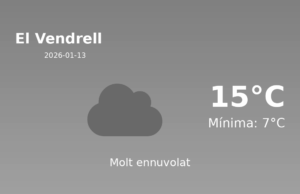 Predicció del Temps al Vendrell per al 13 de gener de 2026 Avui, al Vendrell, gaudirem d'una jornada hivernal moderada amb temperatures agradables per a...