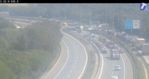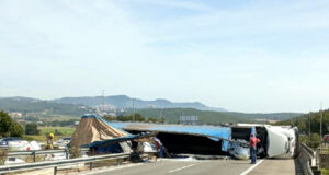 Un camió s’accidenta i bolca la càrrega a l’autopista C-32 al...